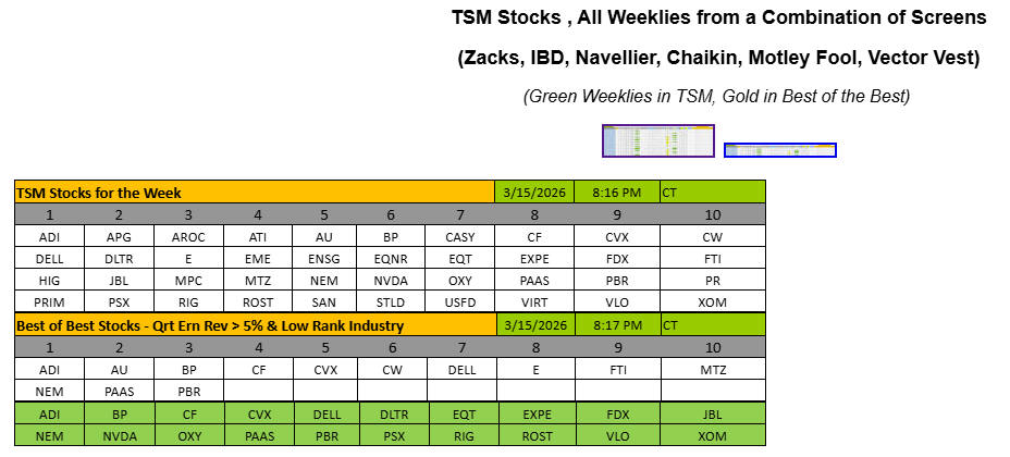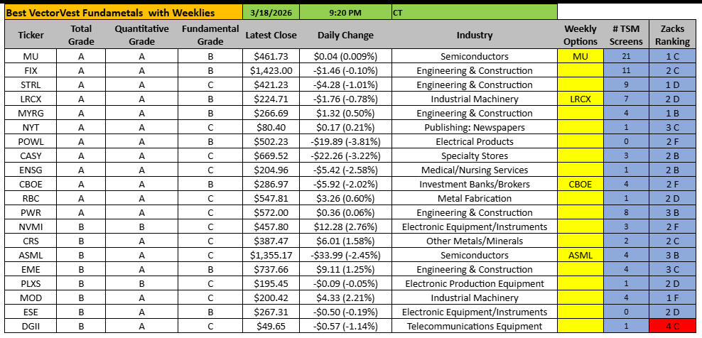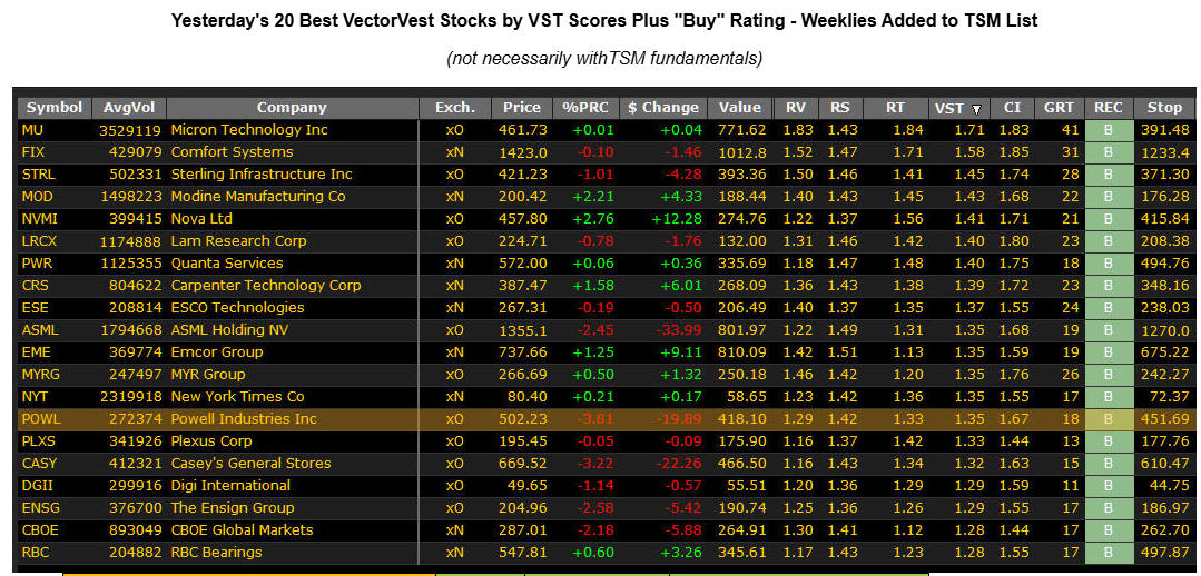 Best Vector Vest stocks by VST, not necessarily TSM stocks...