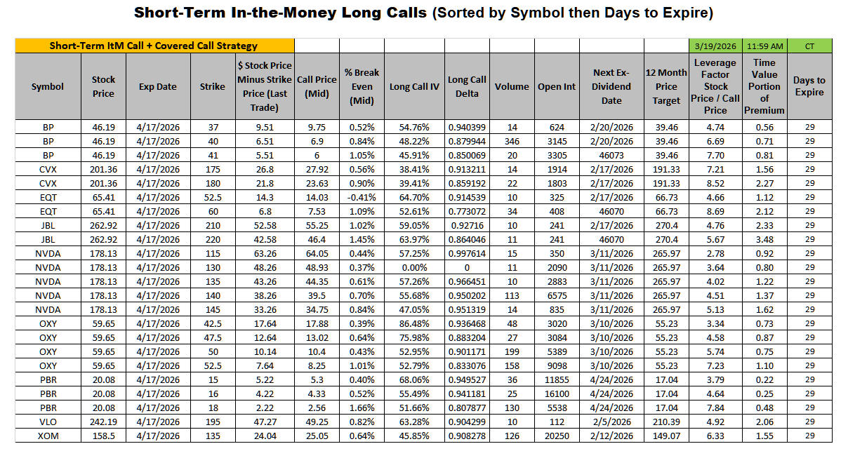 in-the-money Calls (30-45 days out at delta ~0.9), then write weekly Covered