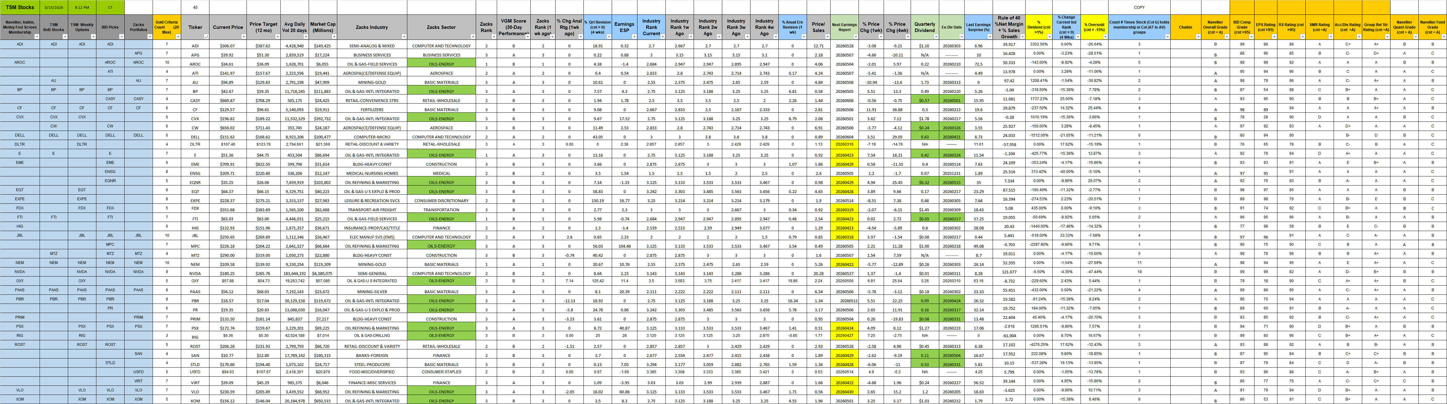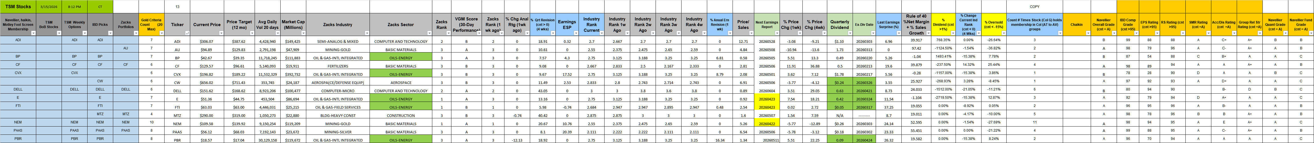 rankings) and with remaining value (PEG ratios and 3-month Target prices). Trade entry is