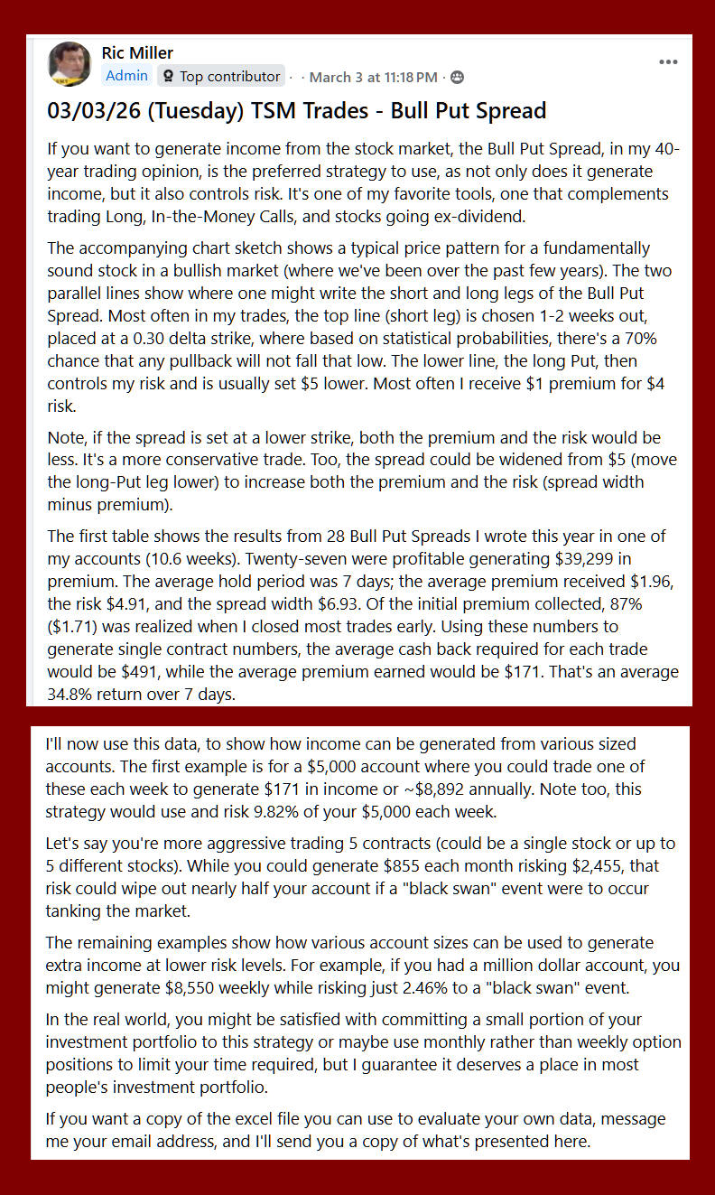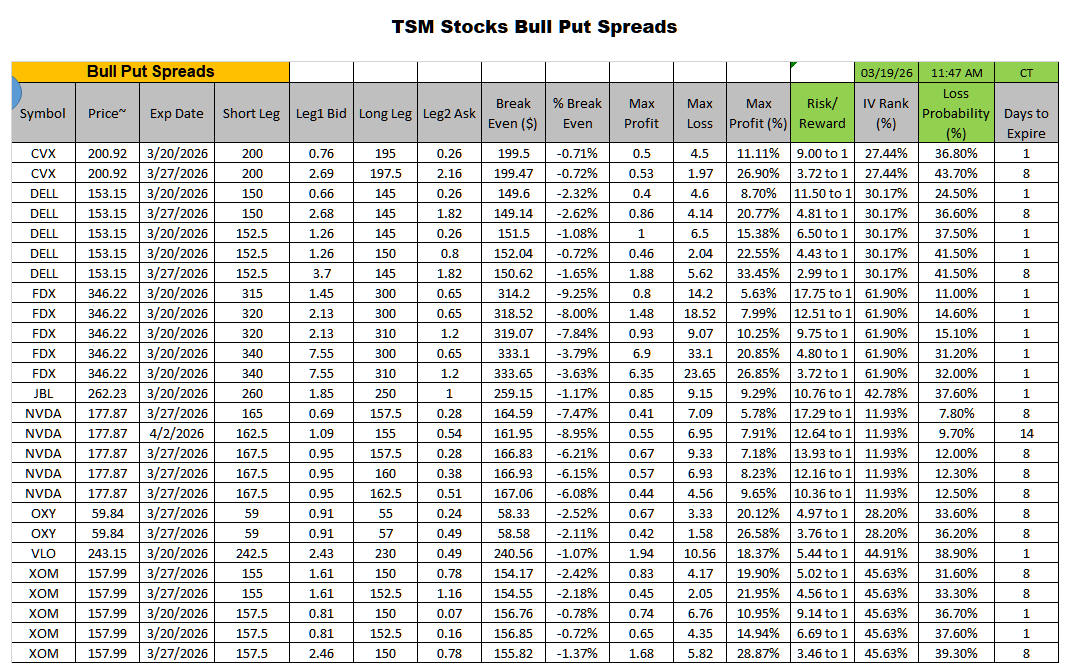 several of these TSM stocks are traded using credit spreads: Bull Put Spreads,