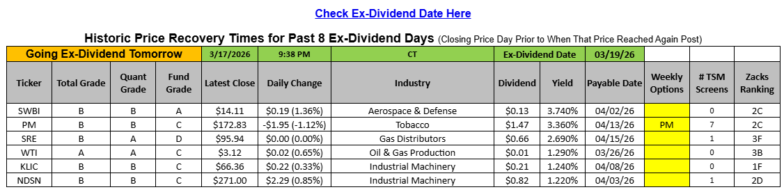 Fundamentals for those quality companies (Navellier grades) going ex-dividend