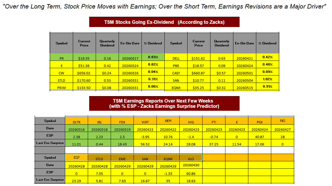TSM Stocks going Ex-Dividend or Reporting Earnings over next month...