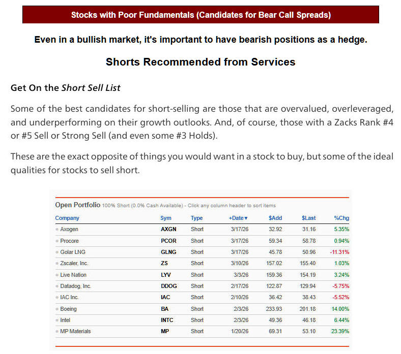 Bear Call Spreads, and Iron Condors. Additionally, stocks going