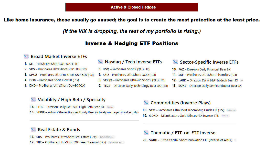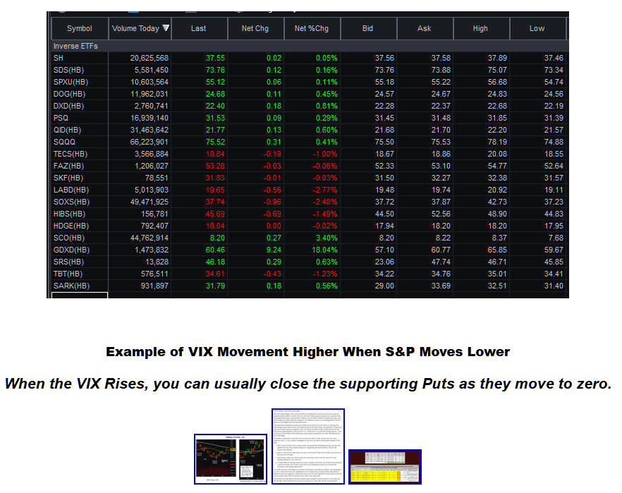 Hedging Candidates both Inverse ETFs and the ViX hedge...